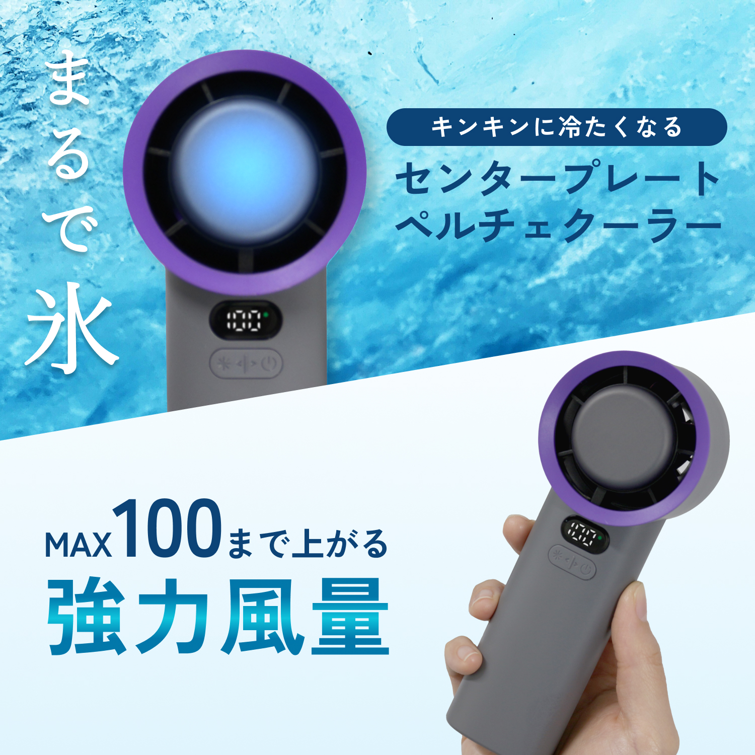 100段階強風+瞬速急冷プレート機能がついたハンディファン