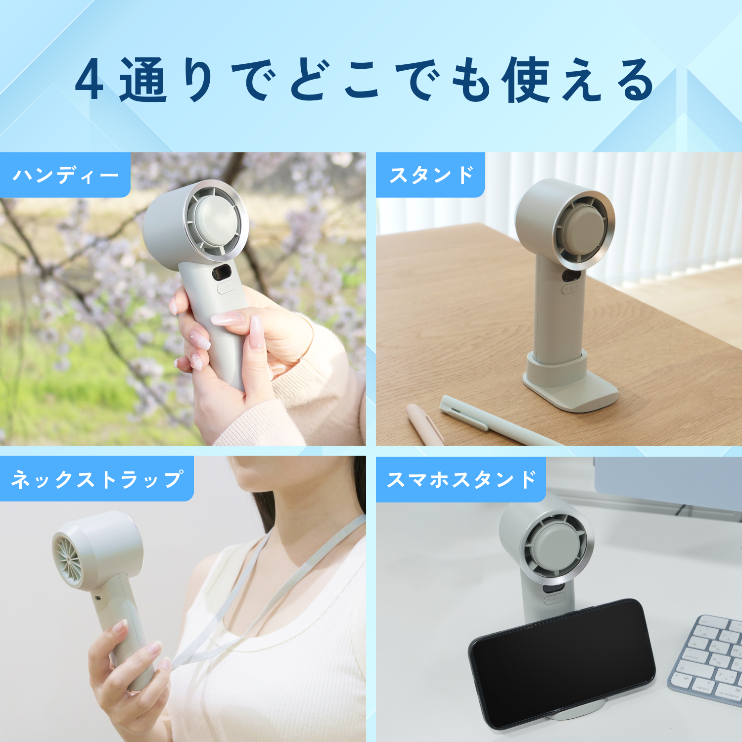 3.卓上扇風機やスマホスタンド、首から下げて使える