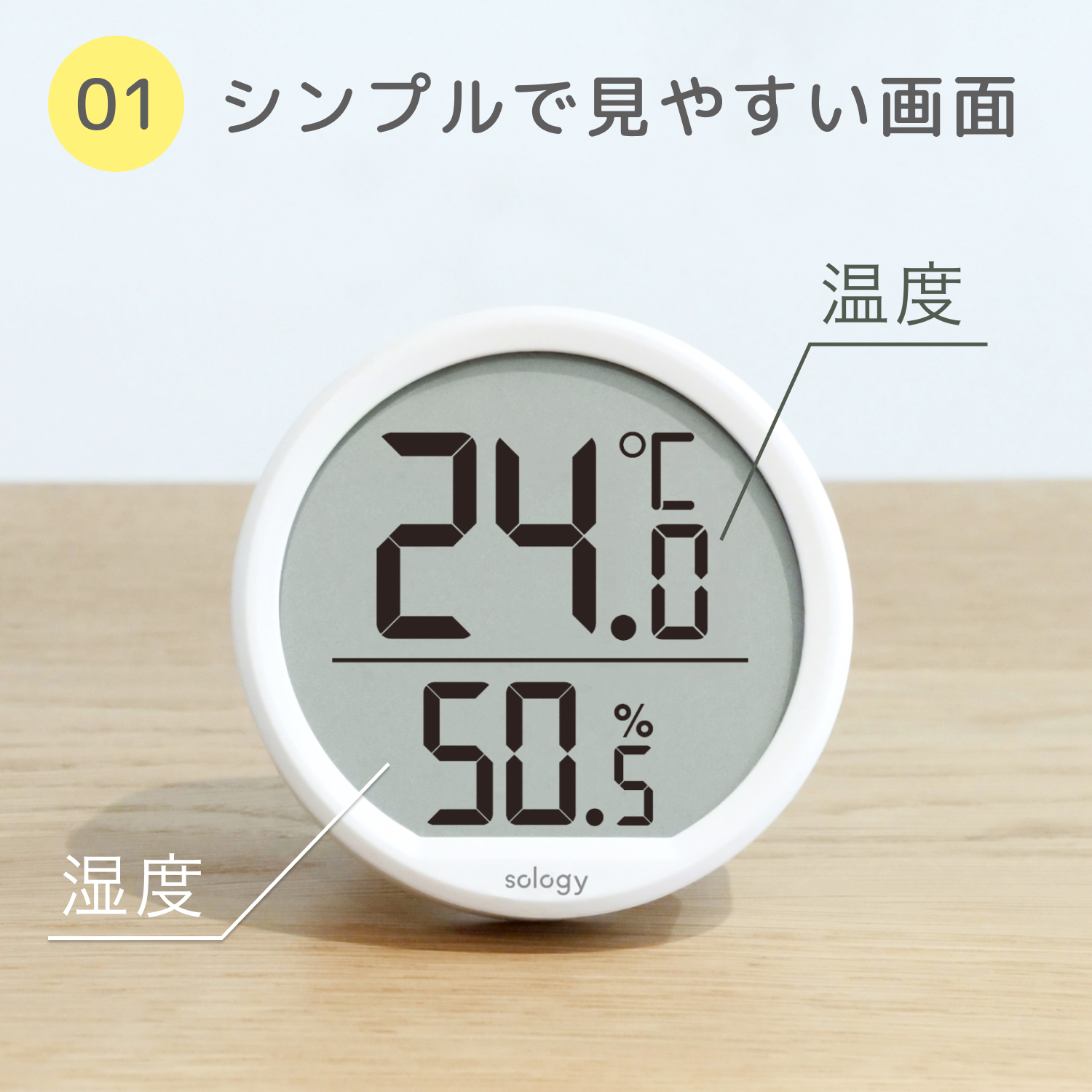1.大きな画面に温度と湿度のみのシンプル表示がわかりやすい