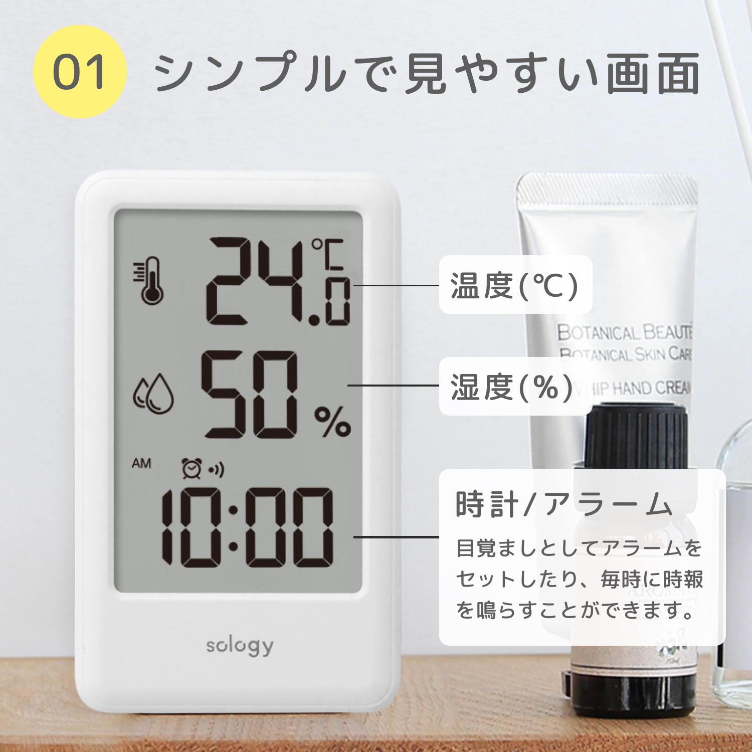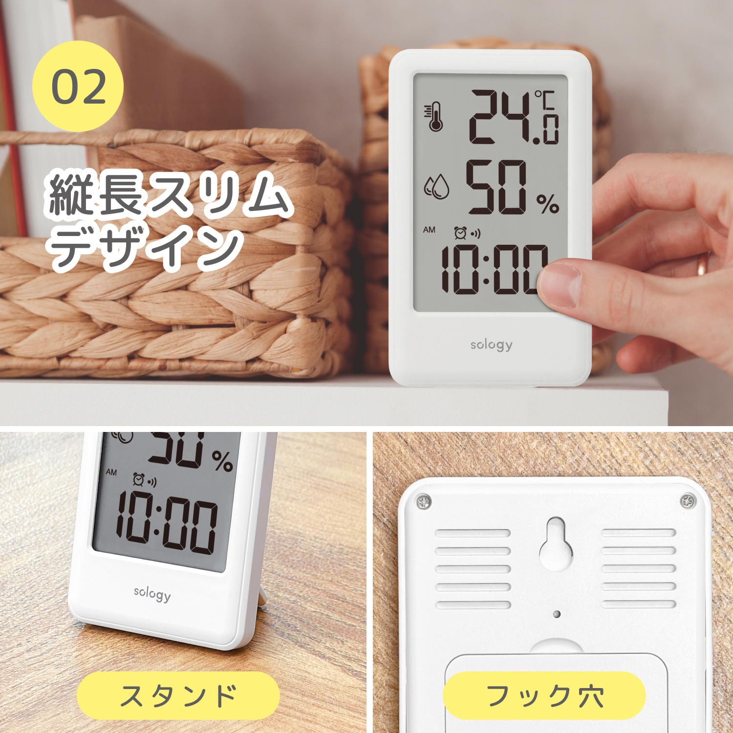 1.大きな画面に温度・湿度・時計の表示がわかりやすい