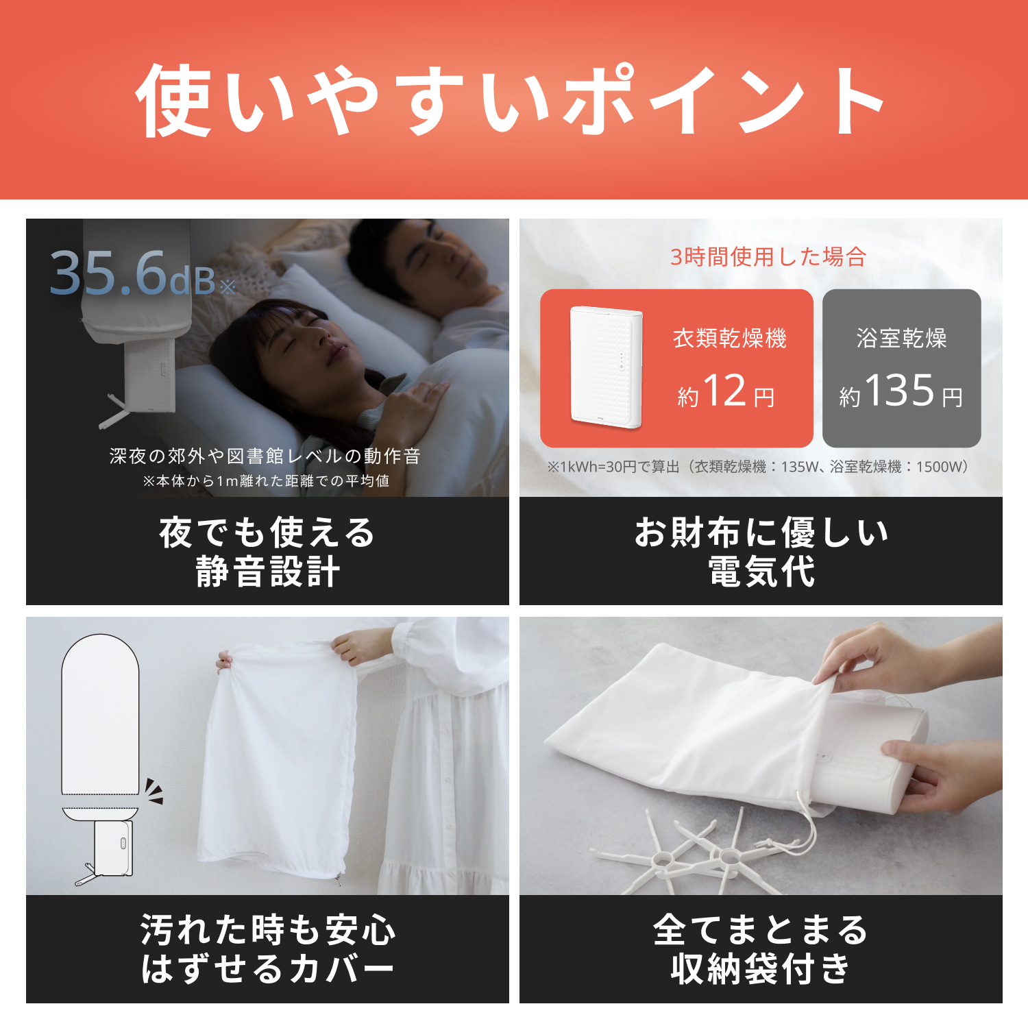 2.下からの熱風でしっかり乾燥!物干し竿は不要