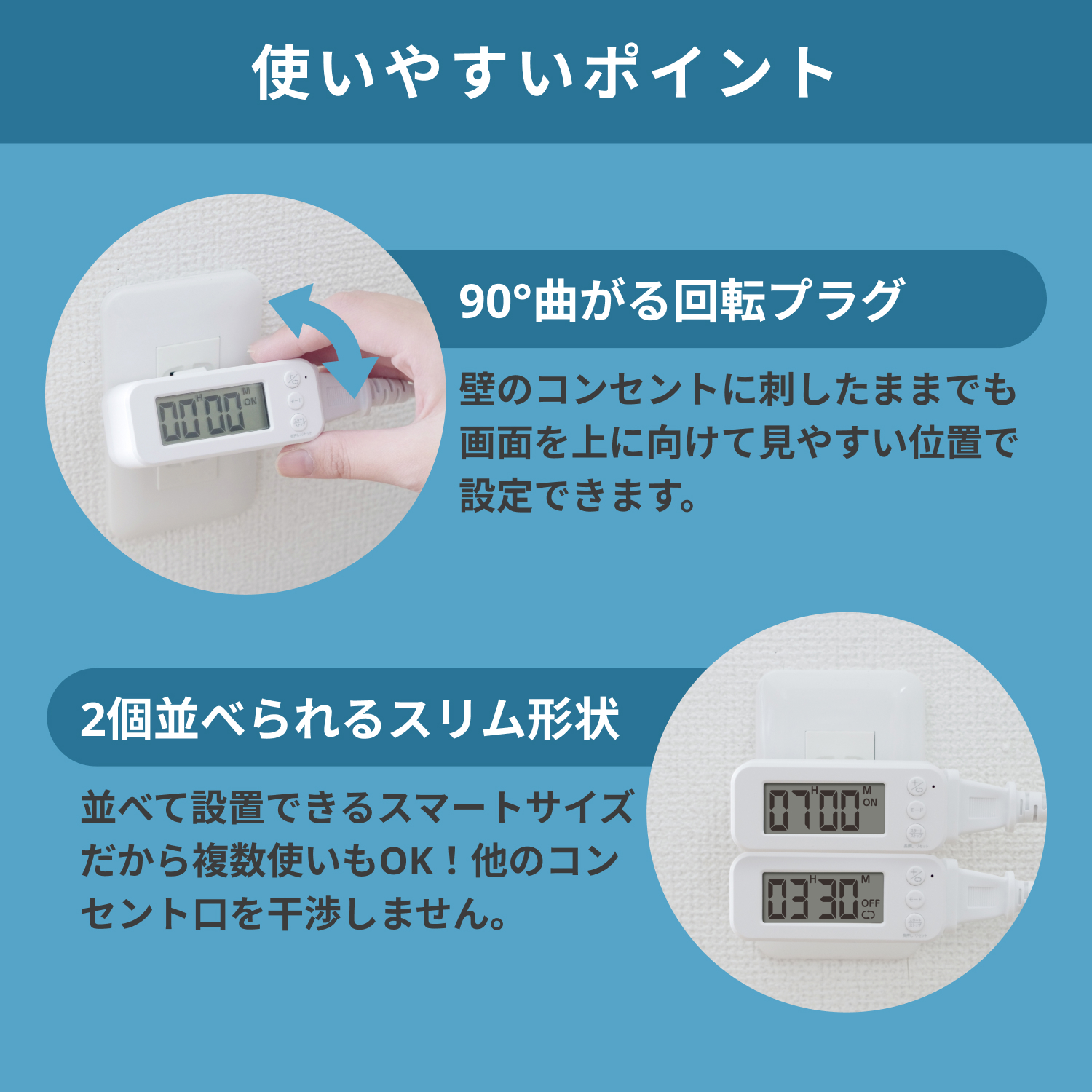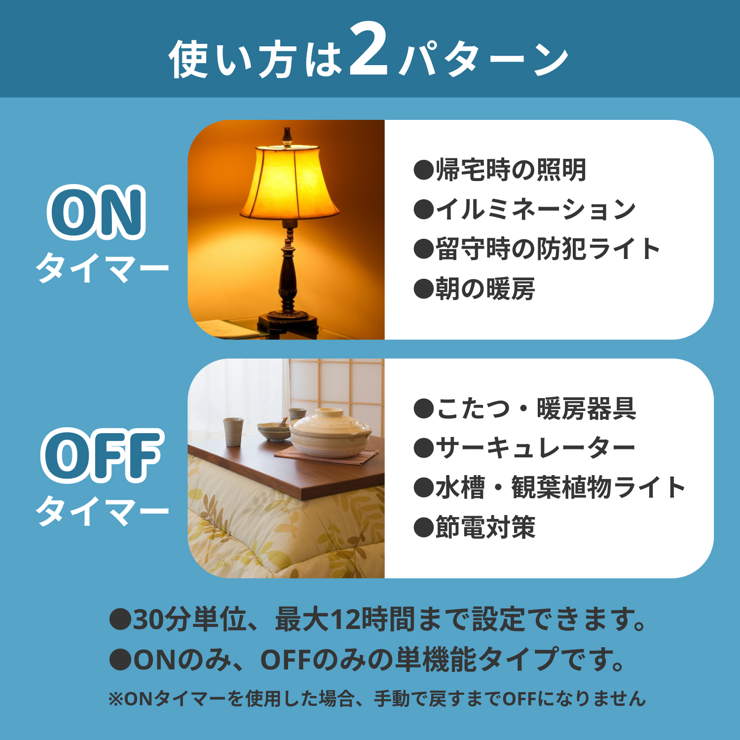 1. 30分単位で12時間まで設定可能!家電を自動でオンオフ!