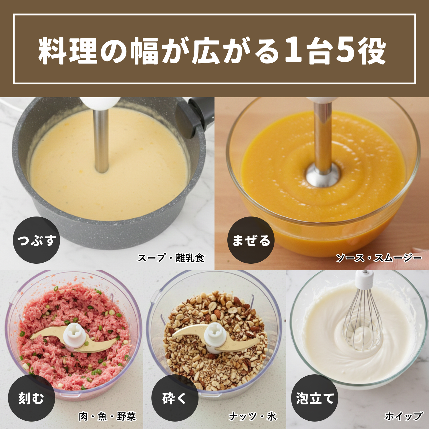 混ぜる・つぶす・刻む・砕く・泡立てるがすぐできる!