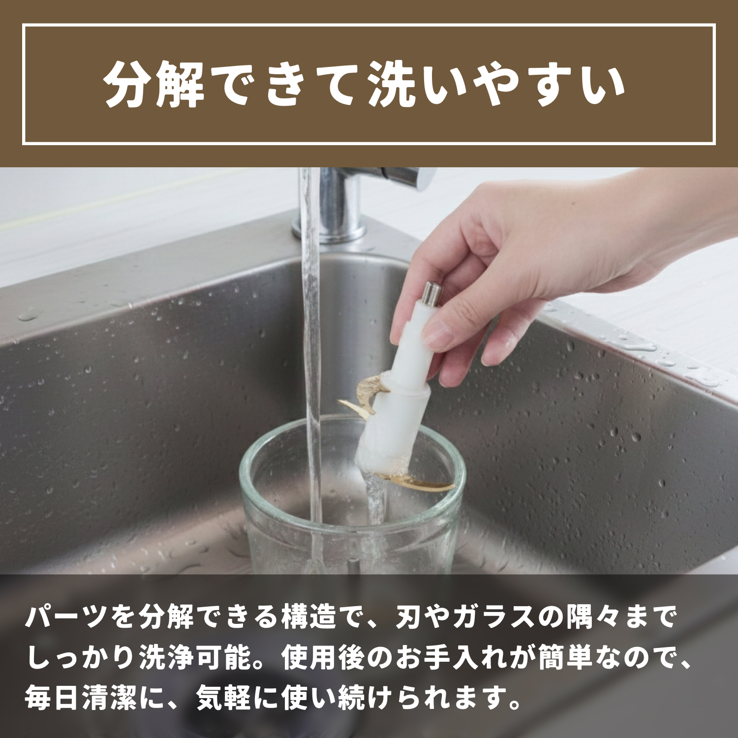 材料:本体/ABS樹脂、容器/ガラス、刃/ステンレス(チタンコーティング)