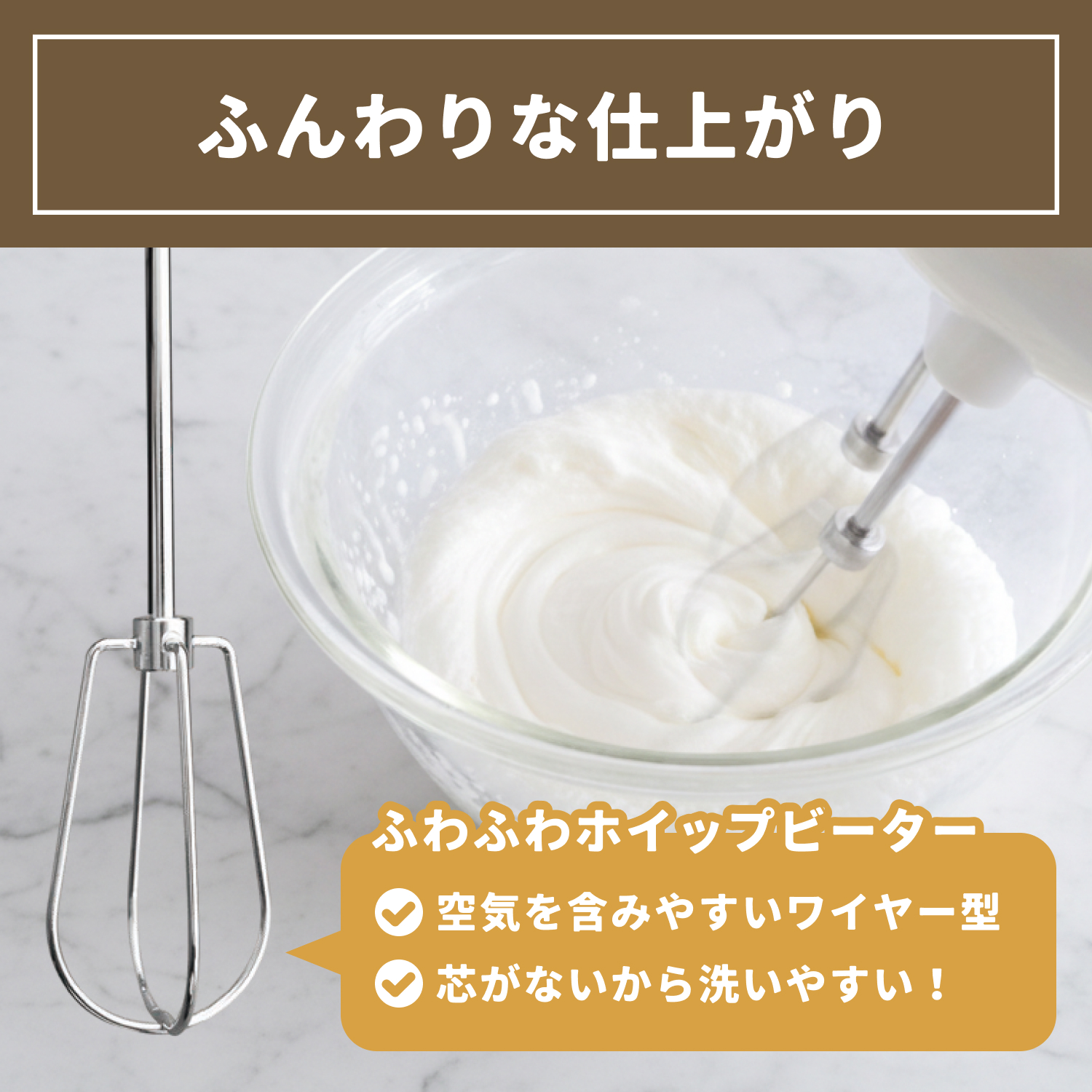 空気を含みやすいワイヤービーターでふわふわ仕上げ