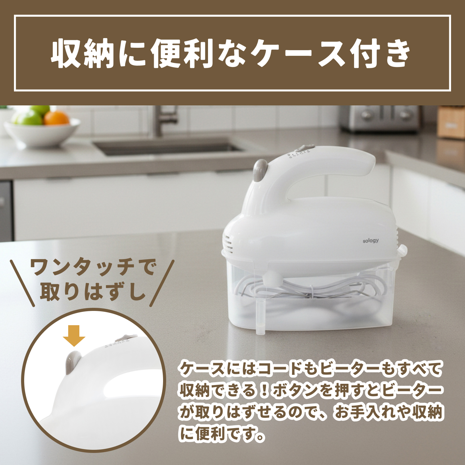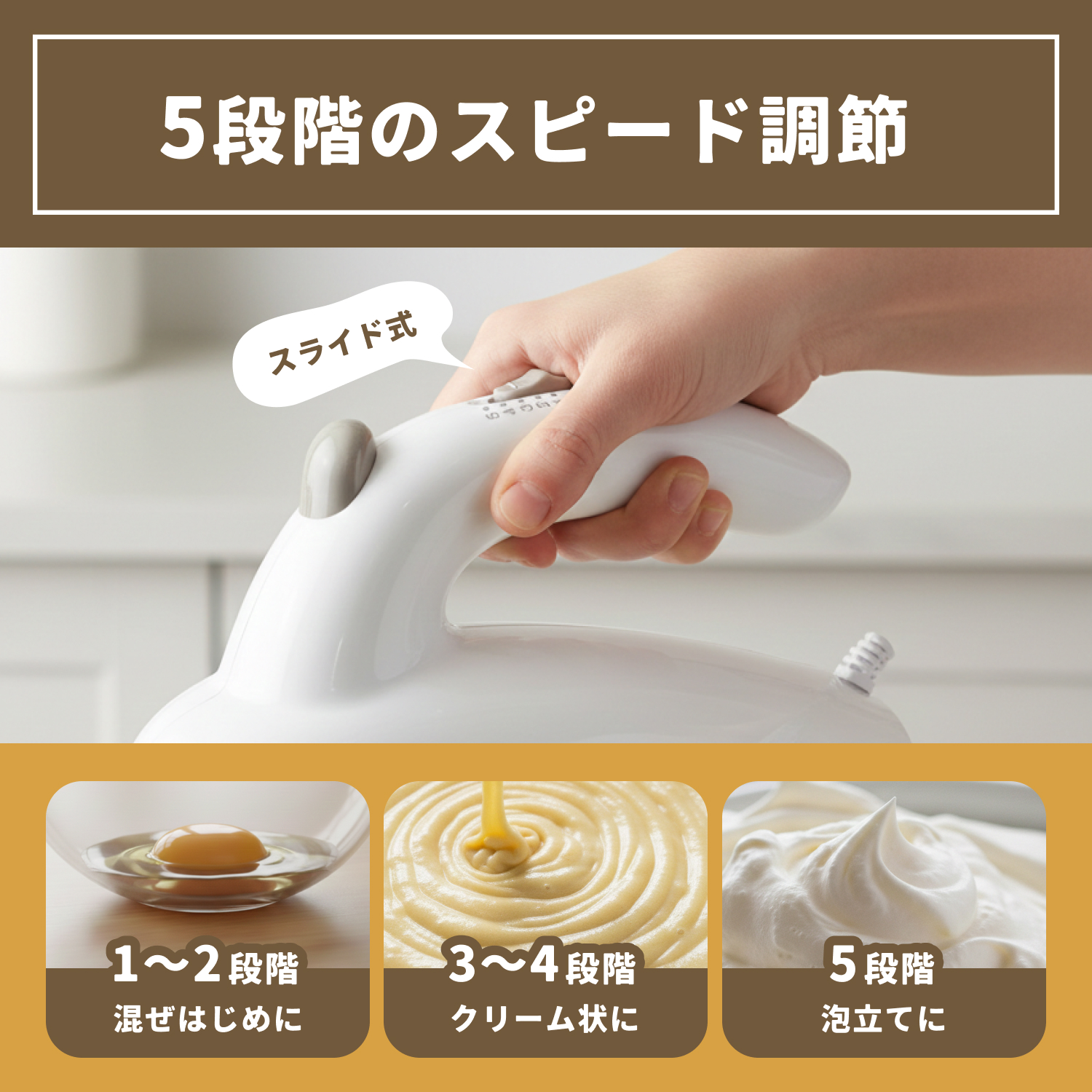 3.スピード調節可能で混ぜはじめから最後の仕上げまでこの一台で