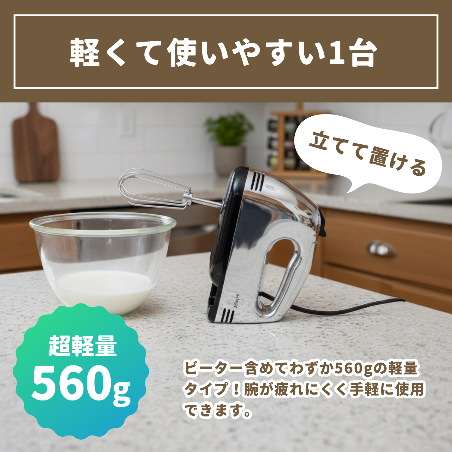 1.腕が疲れにくい軽量タイプ!そのまま立てて置ける