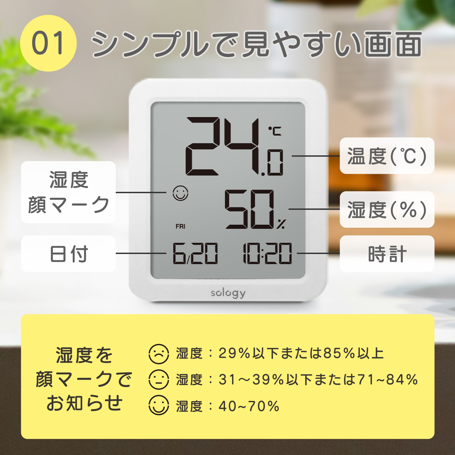 1.湿度状態を顔マークでお知らせしてわかりやすい