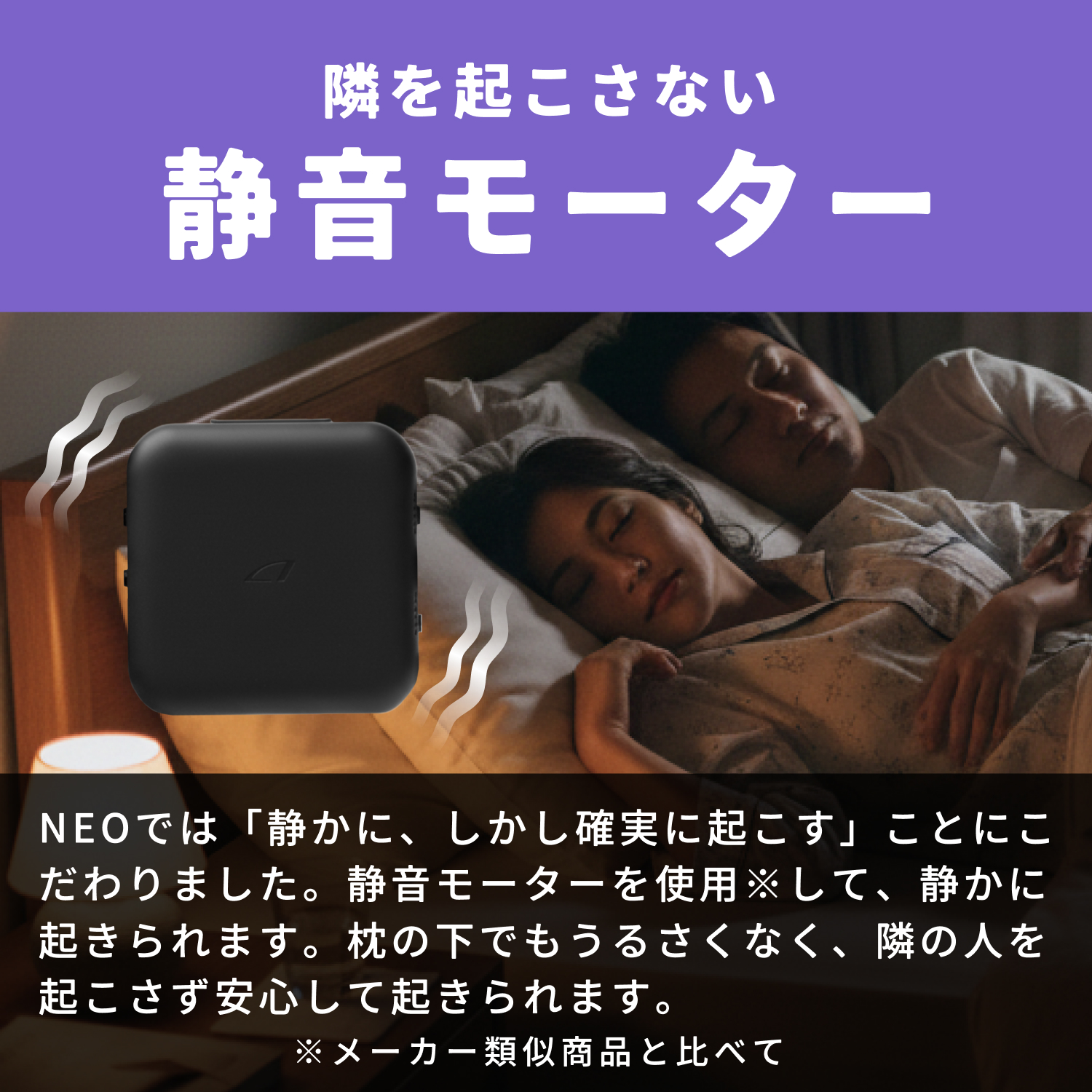 2.静音モーターを採用しまわりの人を起こさない